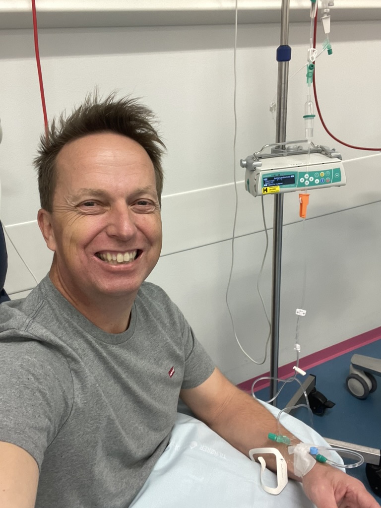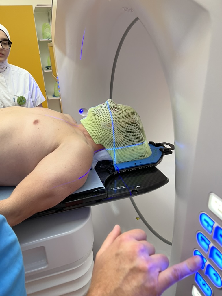I midten af september 2021 fik jeg første omgang stråler. Jeg skulle have stråling seks dage om ugen, og om tirsdagen stod den også på kemo. Behandlingerne gik godt. Strålingerne kunne jeg ikke mærke, mens den ugentlige kemo var lidt værre – mest af alt på grund af alt det saltvand, der sprøjtes ind inden og efter kemoen. Det gav en meget gennemtrængende smag af saltvand i flere dage.